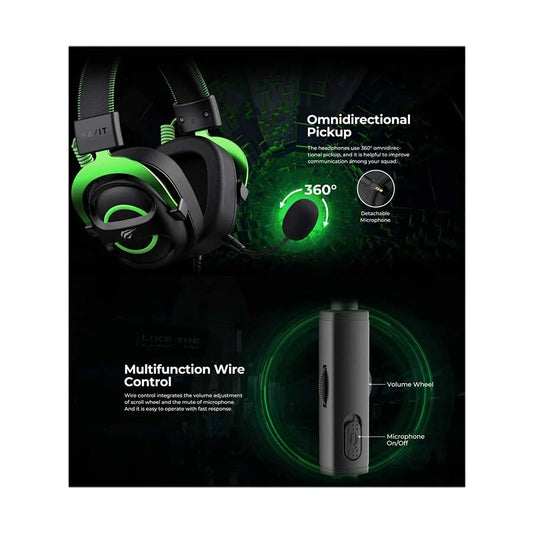 Havit Gamenote H2002E Wired Black & Green Gaming Headphone
