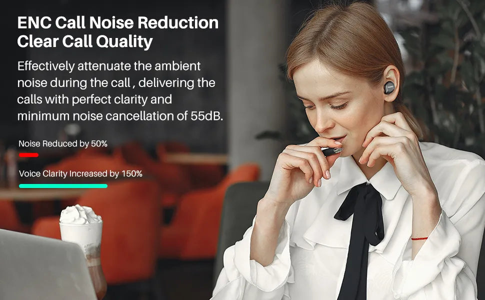 Features with touch control sensors, TOZO NC9 Headset can largely minimize the pressure to your ears when you touch the button for